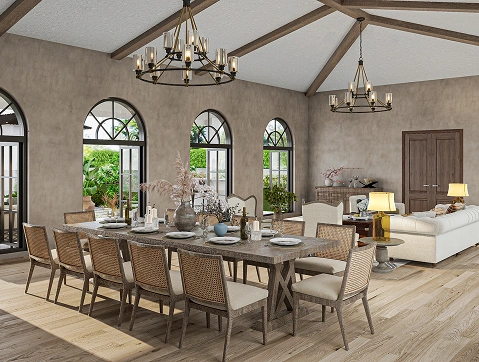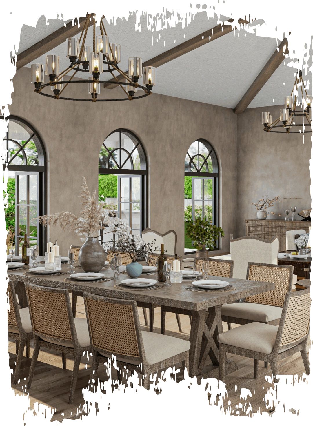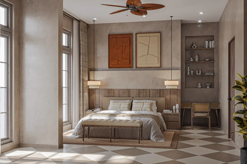 Rooted in calm, this palette embraces natural textures, muted tones and organic materials. Terracotta floors, warm wood finishes and linen accents come together to create a space that feels grounded, soulful and deeply serene.